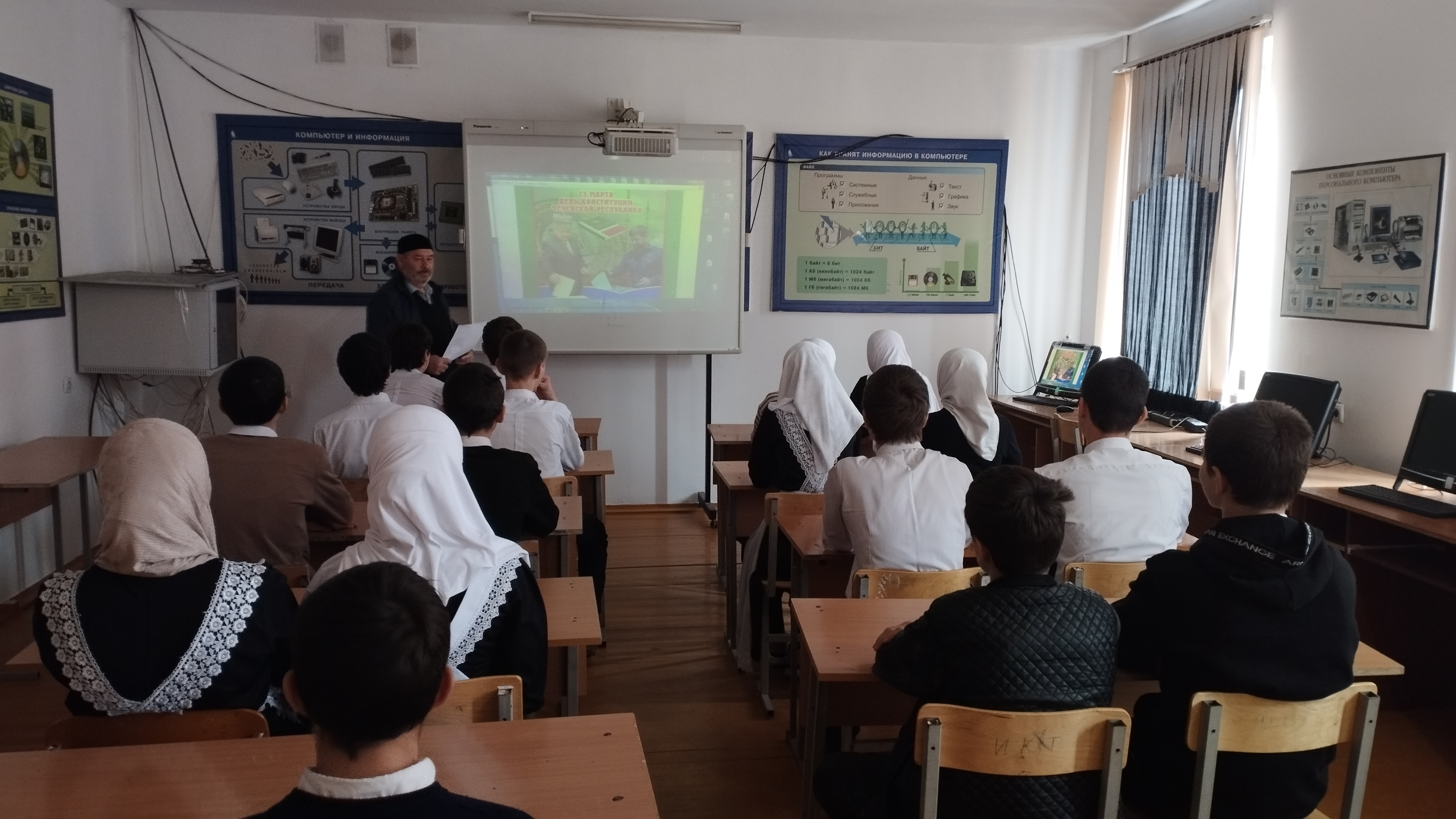 23 марта мы отмечаем День Конституции Чеченской Республики-одну из самых знаменательных дат в жизни всего чеченского народа. Этот исторический день стал началом одного из лучших времен для жителей нашей республики. Цель: сформировать понятия «закон, порядок, право»; дать представление о Конституции ЧР; ознакомить учащихся с символикой: флагом, гербом, гимном; воспитывать гордость за свою республику. 20.03.2024г. в МБОУ СОШ с.Байтарки» учителем истории Сельмирзаевым Х.Х. был проведен урок истории для обучающихся 9 классов на тему "Конституция ЧР- Основной закон". В своей беседе он рассказал учащимся о роли Первого Президента Чеченской Республики, Героя России А-Х. Кадырова в выборе мирного пути, в проведении Всенародного созиданию. Обучающимся напомнили о важности основного закона ЧР.